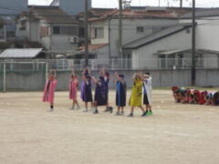 本番さながらに、衣装を着て、最後の練習です(3・4年生)。