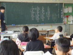 例文から、みんなで修飾語をみつけたり、どの言葉を修飾しているかを考えました。