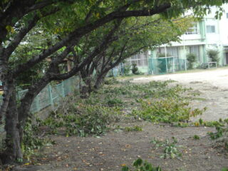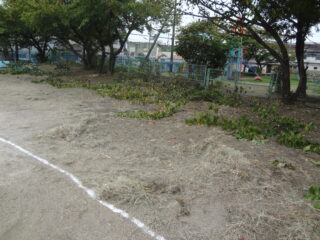 運動場のトラックの外側からフェンス周りをきれいにしました!