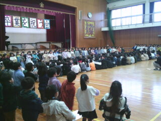 卒業を祝う集会(2/25) 投稿日:2026年2月26日 各学年から、これまで学校を引っ張ってくれた6年生へ、心のこもった合唱や感謝の言葉、そして手作りのプレゼントが贈られました。それに応えるように、6年生からも楽しく、迫力ある合奏が披露され、互いの感謝が響き合う素晴らしい時間となりました。
