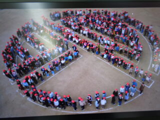 本日、全校児童と教職員が協力し、約1時間かけて人文字を完成し、上空からドローンで記念撮影を行いました。ドローンのカッコよさにみんなウキウキし、うっとり見とれていました。きれいに撮れた記念写真は、下敷きに加工して全校児童に配布する予定です。お楽しみに♪