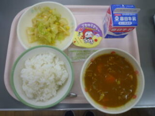 今日のメニューは、「カレーライス・コーンサラダ・アセロラゼリー」です。