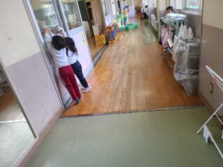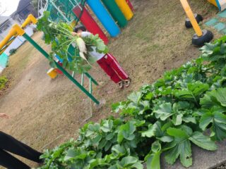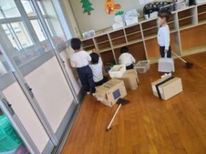 式の後は各クラスで保育室の片付けや掃除をして、新年を迎える準備をしました。最後は年長さんが、収穫してくれたダイコンのお味噌汁を食べました。