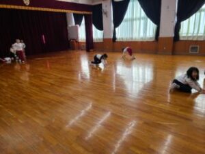 園長先生から、「2学期はいろいろな楽しいことがありましたね。明日からは冬休みですね。冬休みの間も、早寝早起き朝ご飯の習慣をつづけてくださいね。そしてしっかり運動しましょう。お家のおかたづけもしてください。」とお話していただきました。