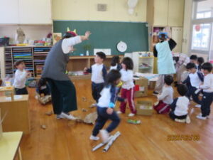 おにはそと ふくはうち 投稿日:2026年2月3日2026年2月3日 今年の節分は2月3日(火)です。中之島幼稚園では各年齢に応じてクラスごとで「節分」や「豆まき」の由来などを聞いて豆まきをしました。 一斉に同じ形のお面などは作りませんが、それぞれの思いで豆まきをしました。お面を作る子、紙を丸めて豆をいっぱい作る子、♪おにはそと、ふくはうち♪の歌を歌う子など一人一人がそれぞれに『節分』に触れることができました。 ぜひお家でも「みんなが健康で幸せに過ごせますように・・・」と願いを込めて豆まきをして、悪いものを追い出してください。