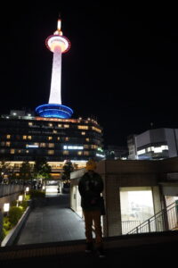 夕方、ホテル到着後は夕食。その後、地下鉄に乗って京都タワーと京都駅の見学に行きました。夜景もイルミネーションも、とってもきれいでした。
