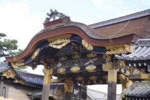 2日目、まずは二条城を見学。鴬張りの廊下をキュキュっと音を鳴らしながら進み、見事な襖絵や欄間を観ながら、白書院や黒書院なども見学しました。
