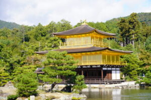 その後、鹿苑寺金閣へ移動。朝日の中の金閣は、より一層輝いてとてもきれいでした。