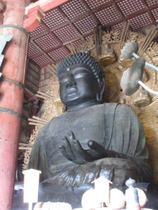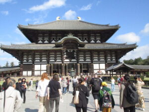 1日目、奈良、東大寺大仏殿を見学。鼻の穴の通り抜けを体験しました。二月堂・三月堂を見学した後は、白銀屋さんで昼食と買い物を楽しみました。