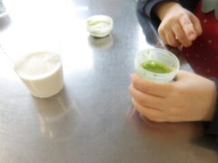 今日はさいさい長屋さんが西脇小学校に来てくださり、抹茶ラテ作りをしました。