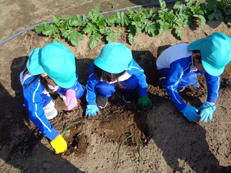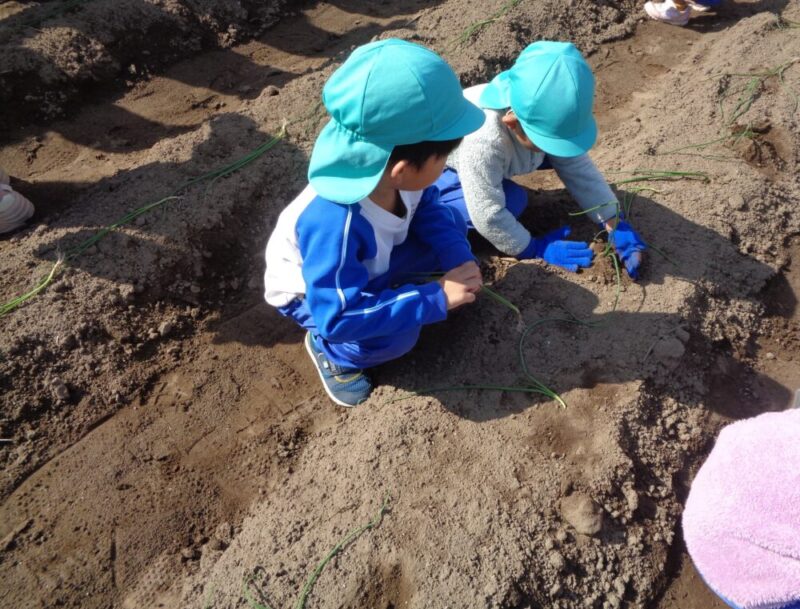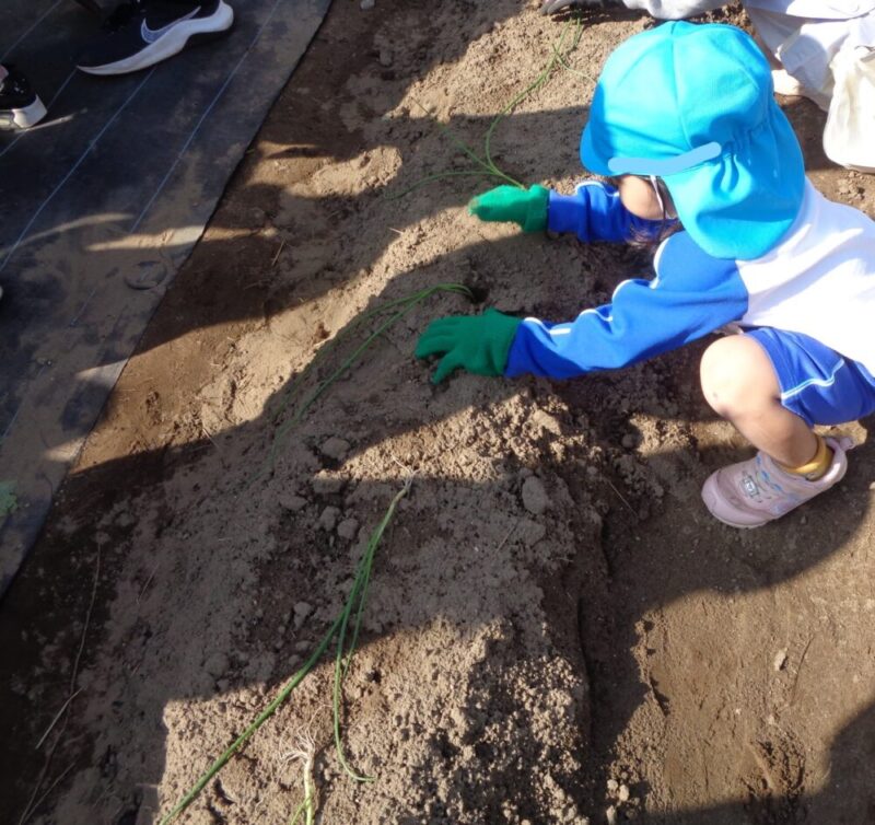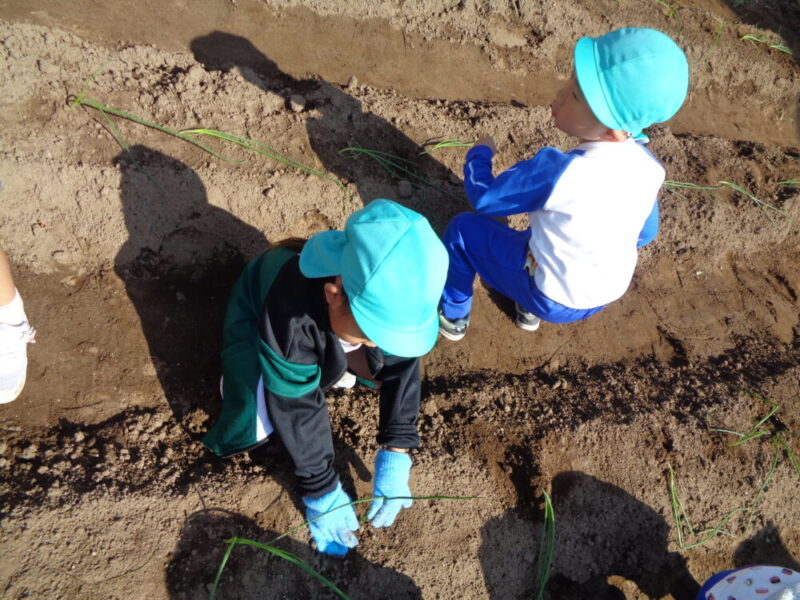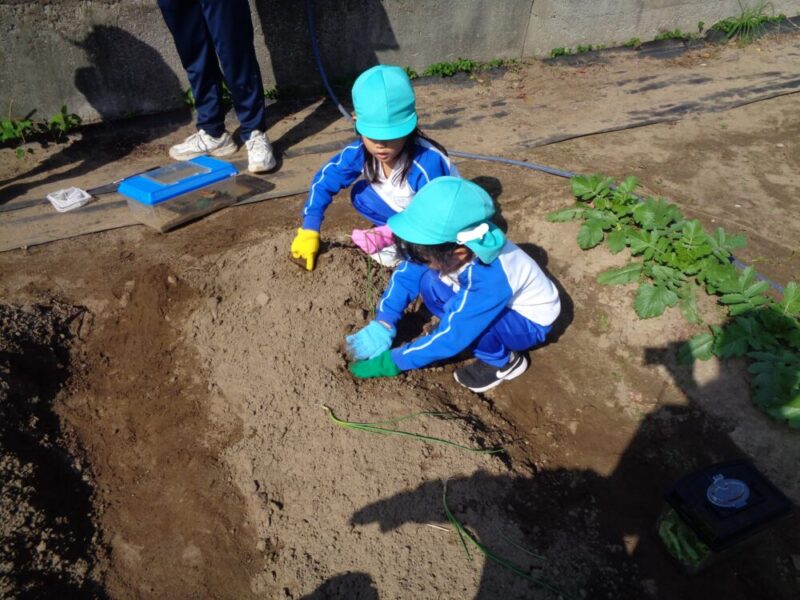 「ネギみたいに細い!!」「いつできるの?」「年長さんが一年生になったころかな~」「え~!!まだまだやな~」先生が「一年生になったら、また見に来てね。」と伝えていました。