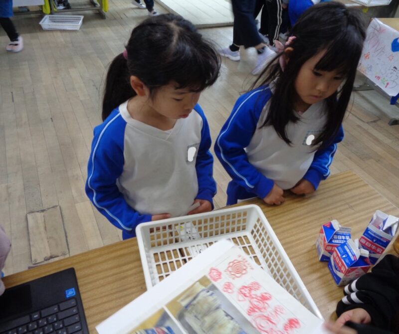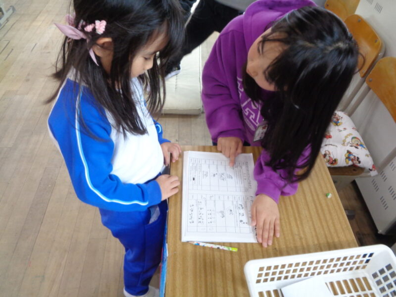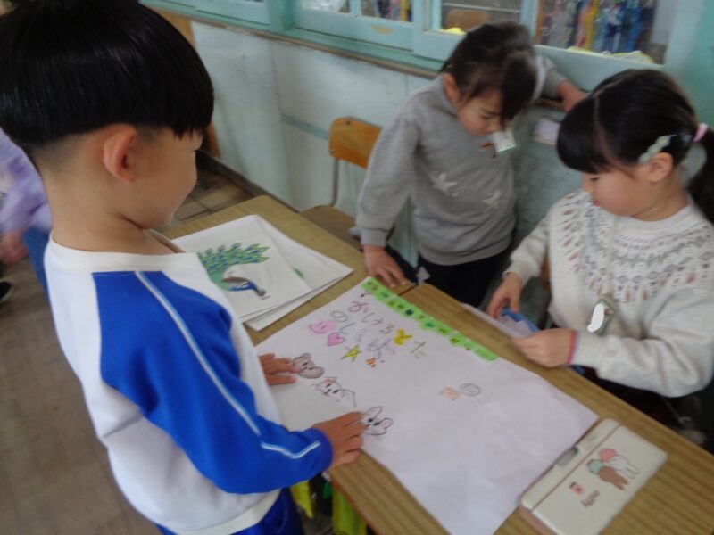 小学校一年生が本園の5歳児と保育所の5歳児を教室に招待してくれました。
