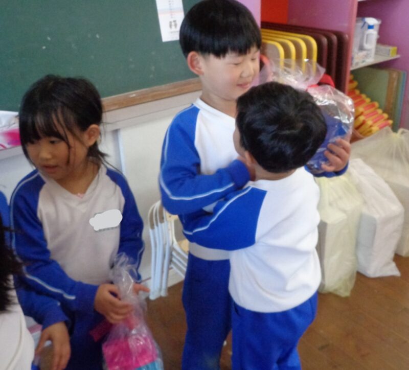 3,4歳児も、プレゼントを渡したあと、「大好き!!」と、抱きついている子も・・・