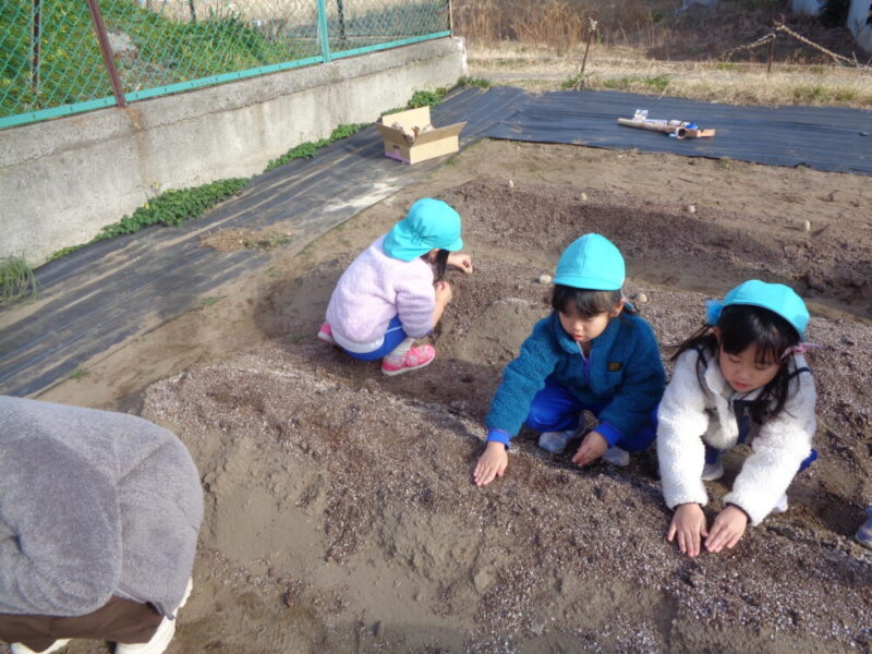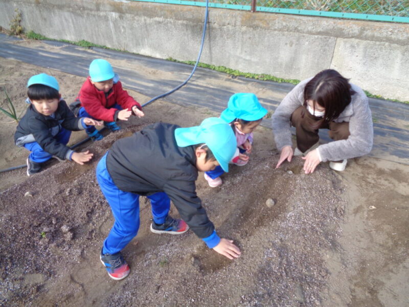 「早く大きくなってほしいでな」と、友達同士で話しながら、土をかぶせてました。