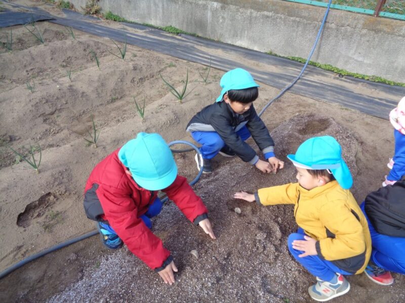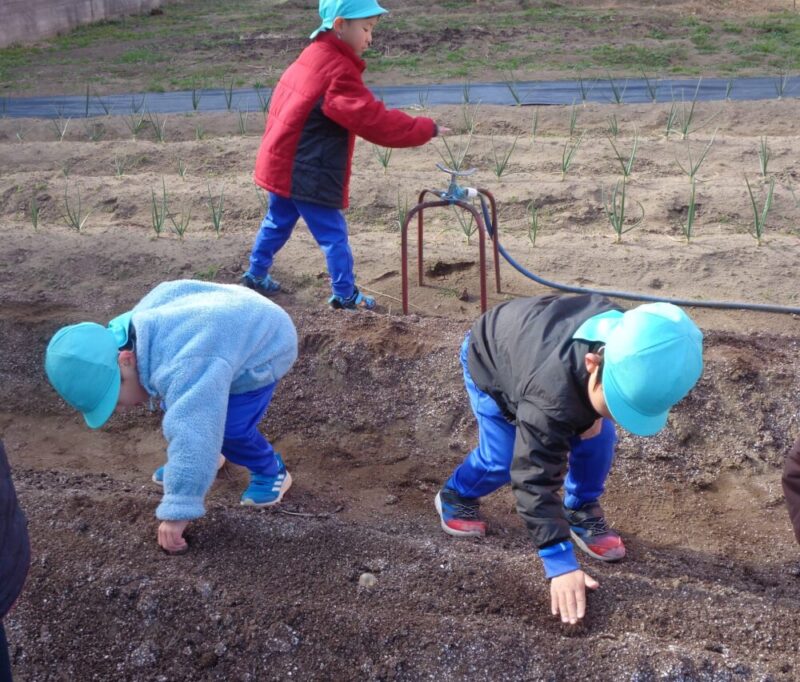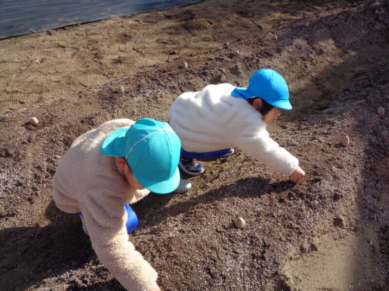 土の匂いや冷たさを感じながら、これから育っていくジャガイモの生長を楽しみにしている子供たちでした。