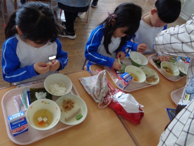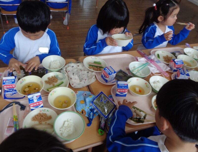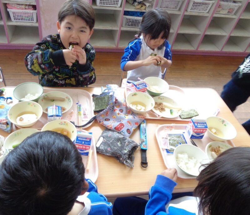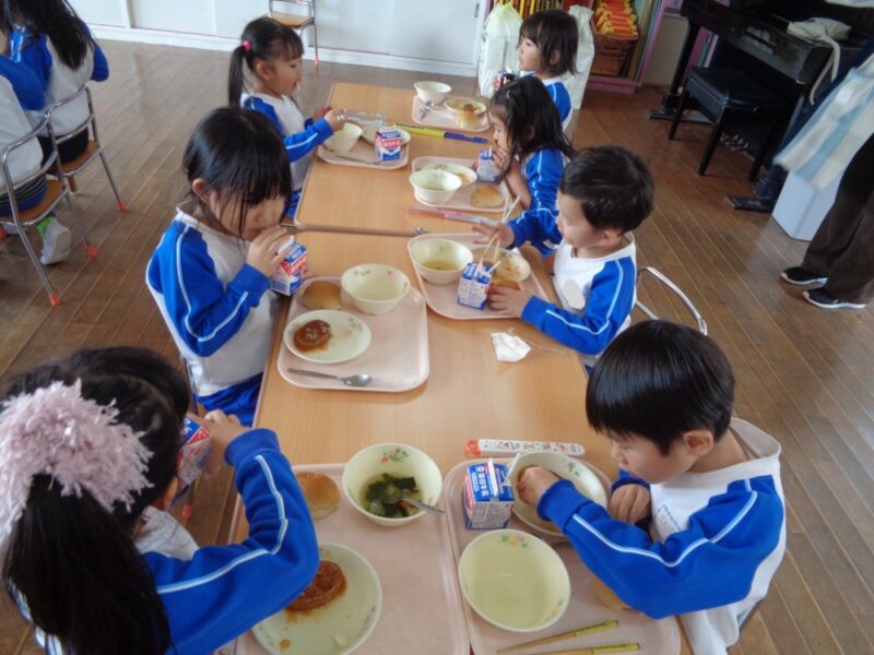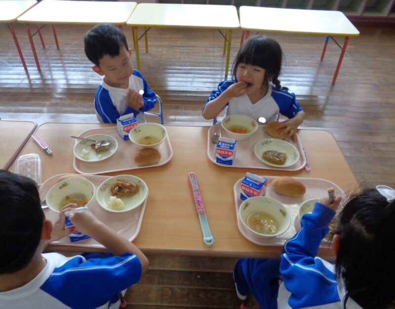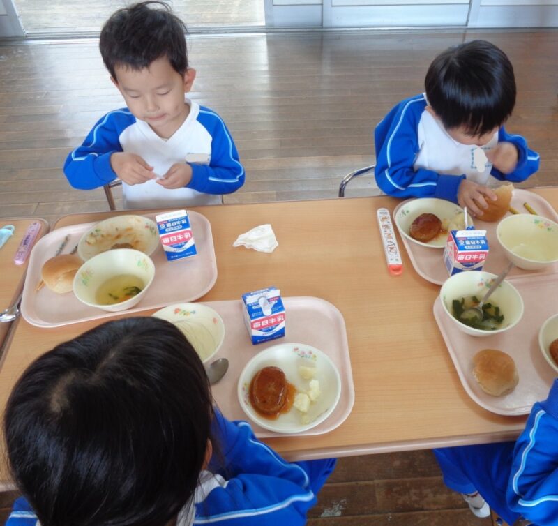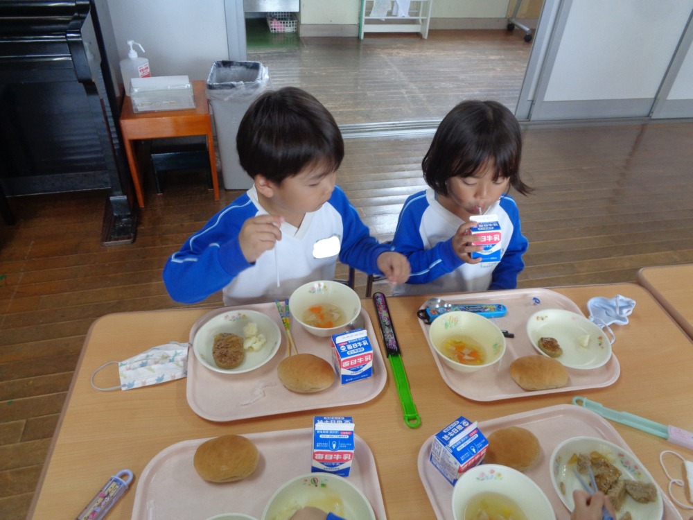 今日もいつものように、友達と顔を見あわせながら、「おいしいね」とお話していました。何気ない給食の時間ですが、友達や先生と一緒に食べた温かい時間も子供たちの思い出に残ることだと思います。
