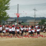 1・2年生の「BlingーBangーBangーBall!」は、歌いながら楽しくダンスをしていると思えば、玉入れの競技になりました。