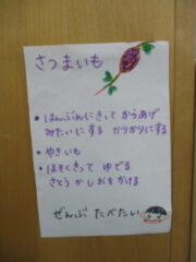 たんぽぽ組さんは、おイモのケーキ、ゆり組さんはおイモごはんだそうです。