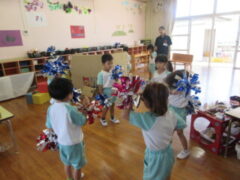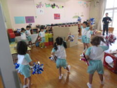 ゆり組の保育室から音楽が流れてくると、自然にみんな集まってきてダンスが始まります。