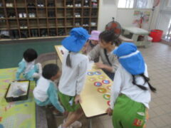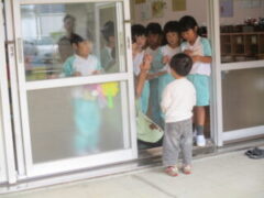 知っているお友達がいたようで、ゆり組さんとお話し中です。