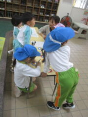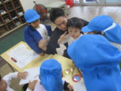 また、なかよしさんが幼稚園に入ってくると、すぐにきく組さんが受付に走ってきます。お世話しようとしてくれるのです。