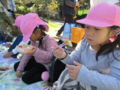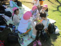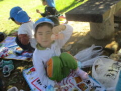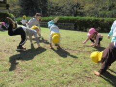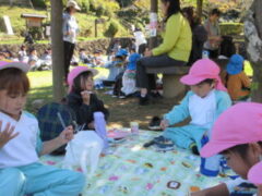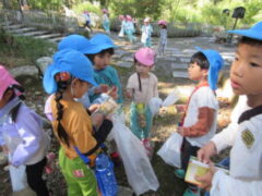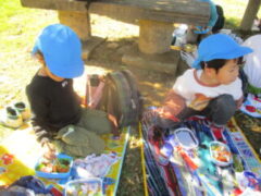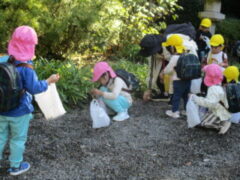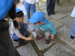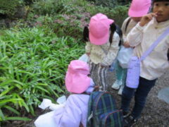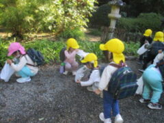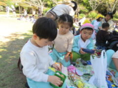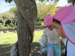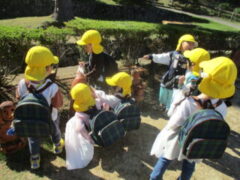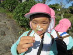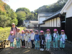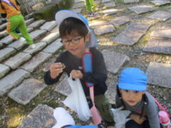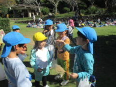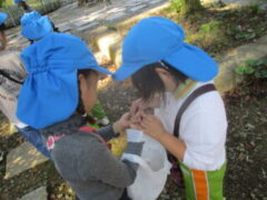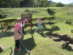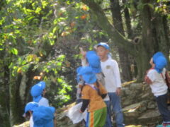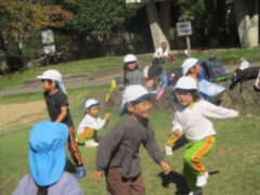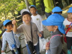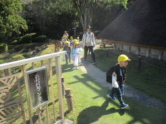私たちの地域にある「紀伊風土記の丘」は、小学校でも校外授業などに使われ、西和佐地区の子供たちにとっては、なじみの深い場所です。きく組さんは、親子でのはにわ作りに続き、今日は全園児で秋見つけをすることが出来ました。