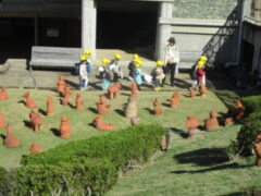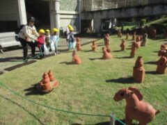 広場に着くと、たんぽぽ組さんは、たくさん並んでいるはにわを見たり、