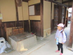 庄屋さんの家も見ました。「ここに昔の人住んでたんかな。」