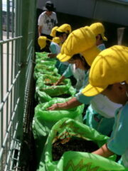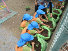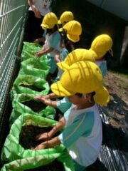 JAさんからダイコンとブロッコリーの種と苗をいただき、みんなで植えました。子供たちは自分で出来ることが増えてきています。
