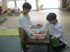 「台を持ってくればいいんよ。」「たんぽぽ組から借りてくるわ。」