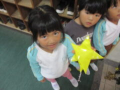 何人かの子供たちが、無くてはならない「星」を探していましたが、どこにもありません。そのまま時間は経ち、子供たちは遊びを終え、給食を食べた後、「先生、お星さま作ったよ。」と、玄関に持ってきてくれました。