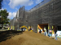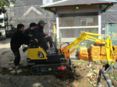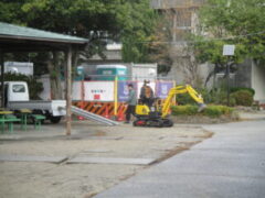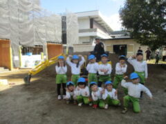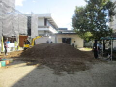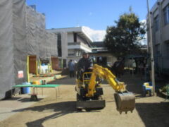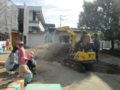 11月19日(水)にしわさフレンズの保護者の方々が築山の土あげをしてくれました。毎学期、1回していただいている土あげですが、2学期は保護者の方が重機を準備してくださり、重機を使っての土あげです。
