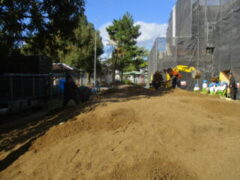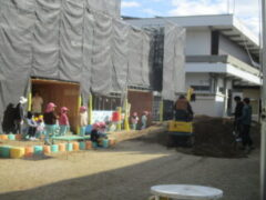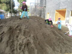 低くなってきていた築山が、少しずつ形を変えていく様子が楽しいようでした。シャベルを持っての保護者の方々も、皆さんで一生懸命 土をあげていただきました。