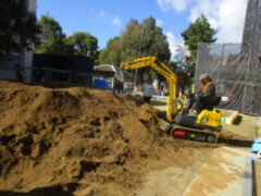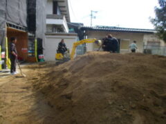 早速、重機での土あげが始まりました。子供たちも応援に来て、近くで見せていただきました。