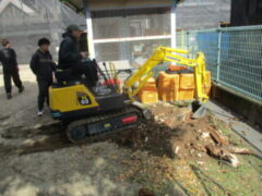 終了後、園庭の端に残っていた切り株もとっていただきました。