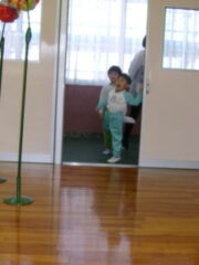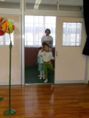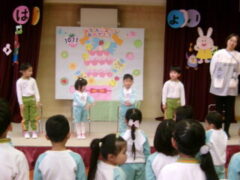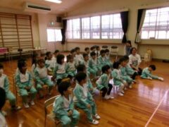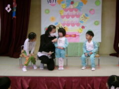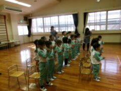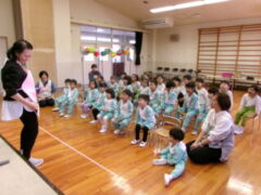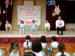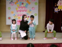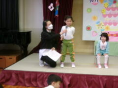 今月は、4人の子供たちと先生1人です。名前を呼んでもらって入場しました。