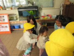毎回来てくれるなかよしさんや、初めてのなかよしさんもいます。西和佐幼稚園の子供たちにとって、なかよしさんは、自分たちの大切な仲間になってきているようです。自分より小さい子たちに、たんぽぽ組さんも優しくしてくれます。自分たちがしてもらったように。