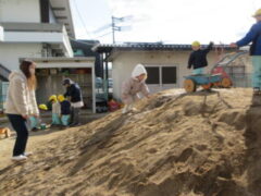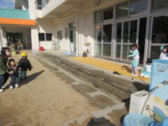 きょうは、とっても寒い日でした。でも、砂場が好きな友達は、帰るまで砂場であそんでいました。