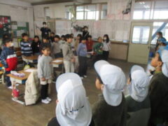 いよいよ、グループの友達と一緒に学校の中を探検に行きました。