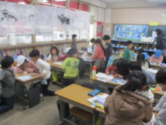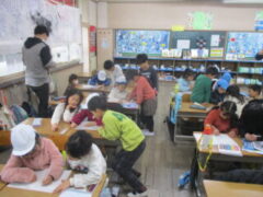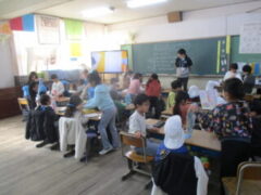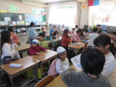クラスに戻ってきたみんなは、楽しかったことを伝えあって、今日の学校探検は終了です。