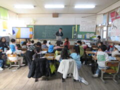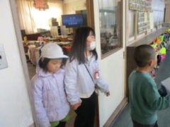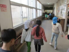 1月30日(金)きく組さんが西和佐小学校に学校探検に行きました。今日の探検は、西和佐保育所さんと一緒です。