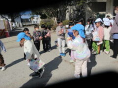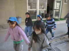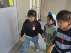 保育所さんをみんなで見送り、「ばいばーい。」「また、遊びに行くねー。」