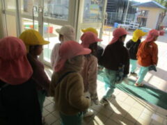 保育所さんをみんなで見送り、「ばいばーい。」「また、遊びに行くねー。」