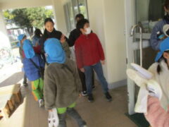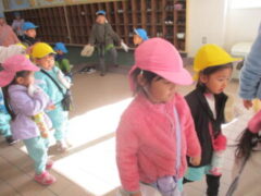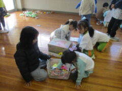 今日は、少し暖かく在園児も園庭で遊ぶ子供が多く見られました。準備をしていると、なかよしさんが来てくれました。