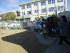 1年B組さん、2学期から幼稚園の友達に遊ばせてあげたいと思って、準備をしてくれていてありがとうございました。やっと、思いが叶って一緒に遊ぶことが出来てよかったです。いつも、幼稚園や保育所の友達に優しくしてくれてありがとう。これからも、よろしくお願いします。
