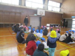 子供たちは、紙芝居で節分の話や、絵を見て恵方巻の由来などを真剣に聞いていました。