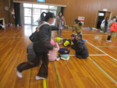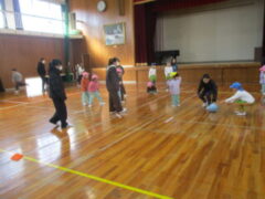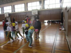 1月21日(水)5年A組さんと一緒に体育館で遊びました。5年生が事前に準備してくれて、何をして遊びたいかもリサーチ済みです。