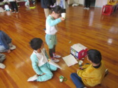1月21日(水)1年B組さんが遊びに来てくれて、手作りのおもちゃで遊ばせてもらいました。