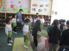 お片づけをして、1年生が帰るとき、恥ずかしくてお話出来なかったきく組さんたちが来ました。「楽しかった。ありがとう。」思っていることを言えました。