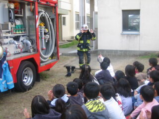 自分たちの生活の安全を火災から守ってくれている消防士さん、自分たちにも火事を起こさないようにできることをやっていこうという気持ちも高まった授業でした。